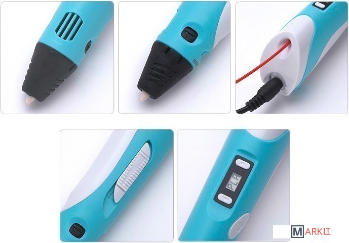 Компактное современное устройство, позволяющее создавать трёхмерные объекты с помощью специального пластика. Ручка оснащена LCD дисплеем, на котором выставляется температура плавления и регулируется скорость подачи пластика. Имеется встроенная система охлаждения. Нагревательное кольцо и сопло интегрированы в корпус ручки, что делает её использование абсолютно безопасным.