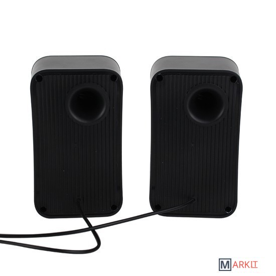 Колонки 2.0 - отличное решение для каждого, кому важен качественный и чистый звук. Модель FUMIKO ELVIRA отлично подходит как для прослушивания музыки, так и для просмотра фильмов. Компактное устройство особенно пригодится владельцам ноутбуков, встроенные динамики которых не способны выдать достаточную мощность и громкость. Новейшие технологии в производстве комплектующих позволили достичь хорошего уровня громкости и чистоты звучания. С источником звука они соединяются с помощью кабеля с разъемом 3.5 мм Jack. Питание происходит от USB - больше никаких лишних проводов. Любимая музыка в громком звучании теперь всегда будет с вами. Длина кабеля позволяет подключить колонки к разъемам на задней панели персонального компьютера.Размер одной колонки 12х8х7 см (высота/глубина/ширина)Общая длина провода 105 смРегулировка громкости на проводе