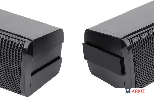 Акустическая система-трансформер со светодиодной подсветкой динамиков и регулятора громкости. Можно использовать как стерео колонки или как саундбар. На передней панели размещены разъемы для подключения гарнитуры.