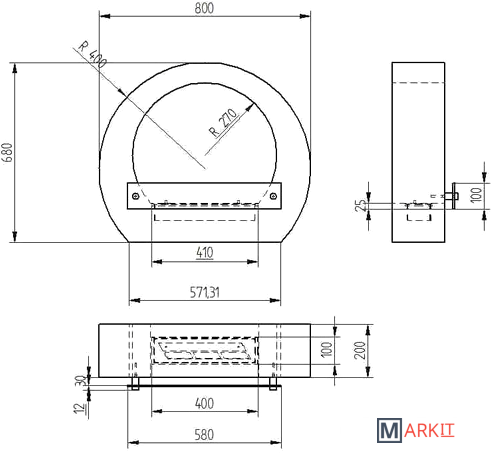 Линия огня: 300 ммЦвет: белыйВозможен другой цвет под заказ