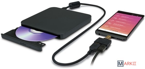 Внешний оптический привод позволяющий читать и записывать DVD±R/RW, CD-R/RW диски и DVD-RAM диски (без картриджей). Переходники из комплекта позволяют подключать привод к смартфонам/планшетам с USB micro B/ type C и ОС новее Android 4.4.