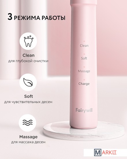 Markit » Электрические зубные щетки и ирригаторы » Электрическая зубная щетка Fairywill E11 (розовый, 8 насадок)