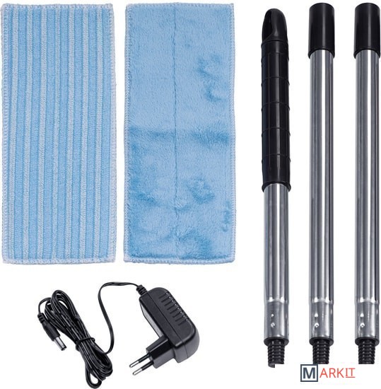 | Комплектация | Трехсекционная металлическая трубкаТряпка для влажной уборки и мытья пола (2 шт.)Размер тряпки 285 х 95 ммИнструмент для очистки щеткиСетевой адаптер |