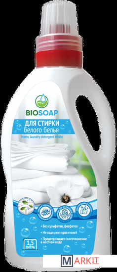 Жидкое концентрированное средство для машинной и ручной стирки белого белья из хлопчатобумажной, синтетической, искусственной тканей и их смесей. Быстро растворяется в воде. Начинает воздействовать на загрязнение с первых секунд стирки. Для придания особой мягкости и облегчения разглаживания используется кондиционер для белья ТМ BIOSOAP. Для удаления сложных загрязнений (кровь, белок, соусы, вино, свежевыжатые соки) рекомендуется перед стиркой предварительная обработка пятновыводителем ТМ BIOSOAP.Содержит компоненты растительного происхожденияВосстанавливает белизизнуПрепятствует образованию серого оттенка на вещахОтлично справляется с пятнами пищевого происхожденияОставляет приятный ароматБезопасно для окружающей средыСтирку проводить в соответствии с рекомендациями, указанными на ярлыке текстильного изделия. При отсутствии ярлыка, перед стиркой нанести раствор средства на незаметном участке изделия и убедиться в отсутствии негативного воздействия. Также в наличии профессиональные пятновыводители.Необходимое количество средства загрузить в выдвижной отсек стиральной машины или полностью растворить в воде при ручной стирке.1 колпачок = 60млДля МАШИННОЙ СТИРКИ загрузка 4-5кг белья:- Слабая степень загрязнения - 1/2 колпачка (30мл)- Средняя степень загрязнения - 1 колпачок (60 мл)- Сильная степень загрязнения - 1,5 колпачка (90мл)Для РУЧНОЙ СТИРКИ на 10л воды:- Слабая степень загрязнения - 1/6 (10мл)- Средняя степень загрязнения - 1/3 (20мл)- Сильная степень загрязнения - 1/2 (30мл)