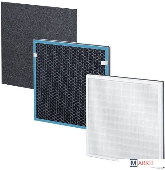 Комплектация - фильтр с активированным углем для нейтрализации неприятных запахов;- HEPA-фильтр E 12, который отфильтровывает бактерии, вирусы и пыльцу;- фильтр грубой очистки, который убирает большие частицы пыли и волоски. / Сменный фильтр состоит из следующих слоев:- фильтр с активированным углем для нейтрализации неприятных запахов;- HEPA-фильтр E 12, который отфильтровывает бактерии, вирусы и пыльцу;- фильтр грубой очистки, который убирает большие частицы пыли и волоски.