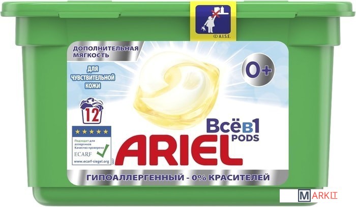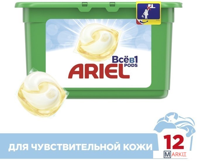 Markit » Средства для стирки и ухода за бельем » Капсулы для стирки Ariel Все в 1 Pods Sensitive (12 шт)