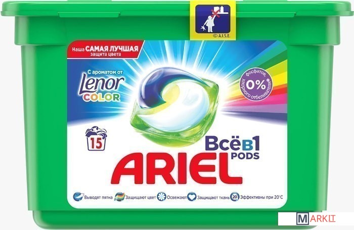 Markit » Средства для стирки и ухода за бельем » Капсулы для стирки Ariel Все в 1 Pods Touch Of Lenor Fresh Color (15 шт)
