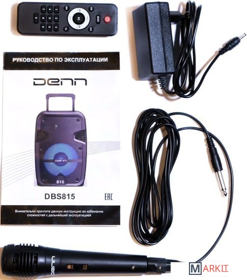 Комплектация - пульт ДУ- один проводной микрофон- адаптер питания- документация