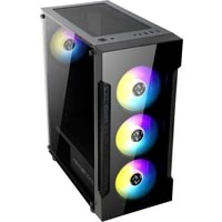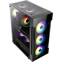 Компьютерный корпус формата Mid-Tower Abkoncore T250 с тремя предустановленными вентиляторами 120 мм спереди и одним 120 мм сзади, боковой и передней панелями из закаленного стекла и с элементами сетчатого дизайна передней панели..