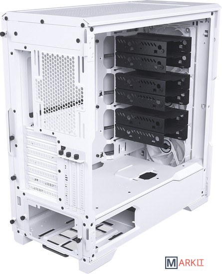 Комплектация:3x DRGB 3pin вентилятора;3x 2.5 SSD корзина;2x 3.5 HDD корзина;1x скоба для поддержки видеокарты;1x крепление для вертикальной установки видеокарты;6x стяжки;1x коробка с аксессуарами, крепежом.