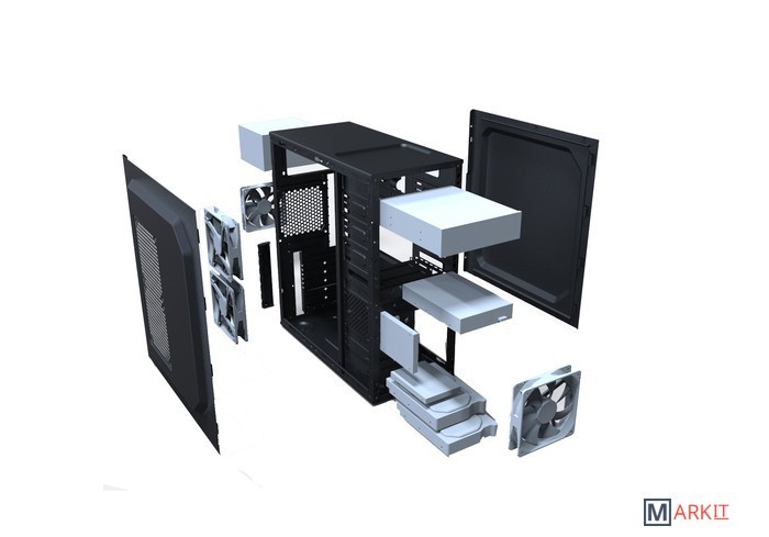 Конфигурация вентиляторов Место для установки вентиляторов 80-92-120 мм на задней стенке корпуса, место для установки 80-92-120 мм на передней стенке, место для установки 2-х вентиляторов 80-92-120 мм на боковой стенке.