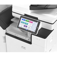 Фото носит иллюстративный характер. Наличие доп. лотков для бумаги уточняйте у продавца.Это цветное МФУ со скоростью печати 35 стр./мин. отличается гибкими мобильными возможностями. Подключение в формате "tap-and-go" упрощает работу пользователей. После быстрой аутентификации удаленные сотрудники могут выполнять задания печати, отправленные в очередь на аппарат с помощью смартфона или планшета. Настройки финишной обработки, такие как фальцовка и брошюрование, можно задать напрямую на МФУ, а благодаря интеллектуальным технологиям Ricoh бумажные документы можно сканировать и отправлять по электронной почте.