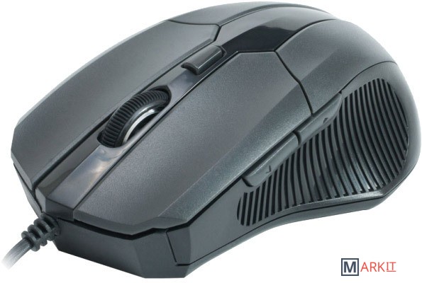 Оптическая мышь, оснащенная USB интерфейсом, 5 кнопками и колесом прокрутки с функцией нажатия.
