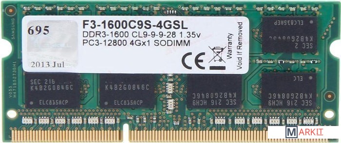 Markit » Оперативная память » Оперативная память G.Skill 4GB DDR3 SODIMM PC3-12800 F3-1600C9S-4GSL