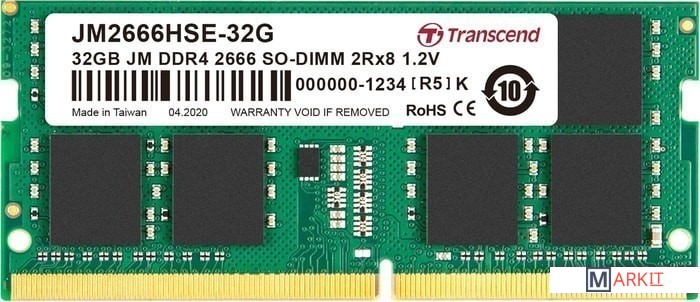 Оперативная память Transcend JetRam 32GB DDR4 SODIMM PC4-21300 JM2666HSE-32G Код: 75696
