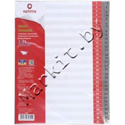 Разделители для регистраторов пластиковые Optima, 31 л., индексы по цифрам (1-31) Код: 32616
