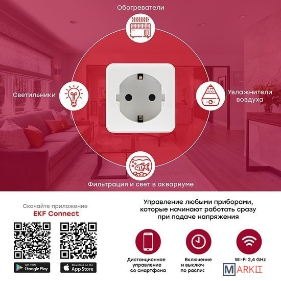 Умная розетка EKF Connect поможет сделать обычные приборы умными. При помощи приложения для Android и iOS, а также при помощи голосовых помощников Алиса от Яндекса, Маруся от VK и Салют от Сбера можно управлять светильниками, вентиляторами, обогревателями, увлажнителями и любыми другими приборами, которые начинают работать сразу же при подаче напряжения.Максимально допустимая общая мощность нагрузки, Вт 4000Номин. ток 16 АРазмер устройства, мм 55х55х80Вес, г 98