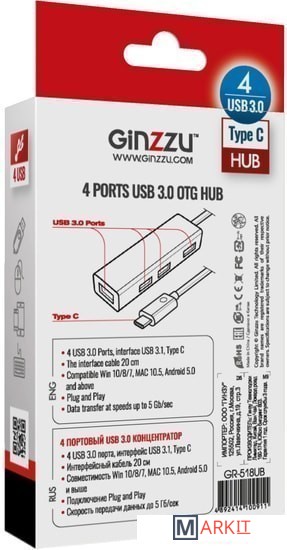 Markit » USB-хабы и док-станции » USB-хаб Ginzzu GR-518UB