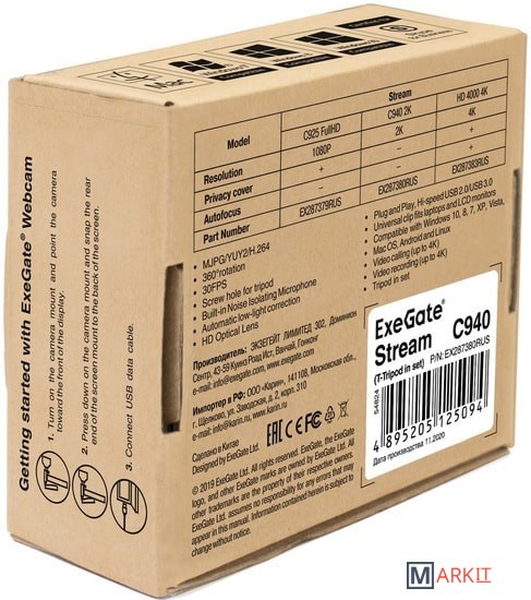 Markit » Веб-камеры » Веб-камера ExeGate Stream C940 2K T-Tripod