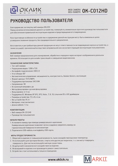 Markit » Веб-камеры » Веб-камера Oklick OK-C012HD