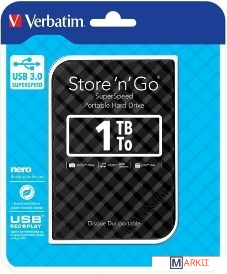 Markit » Внешние накопители (HDD и SSD) » Внешний накопитель Verbatim Store 'n' Go USB 3.0 1TB Черный [53194]