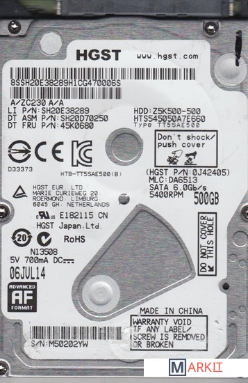 Markit » Жесткие диски » Жесткий диск HGST Travelstar 500GB HTS545050A7E660