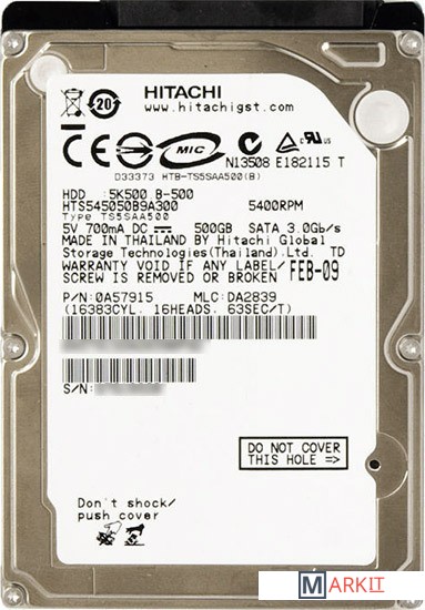 Markit » Жесткие диски » Жесткий диск Hitachi Travelstar 5K500.B 500Гб (HTS545050B9A300)
